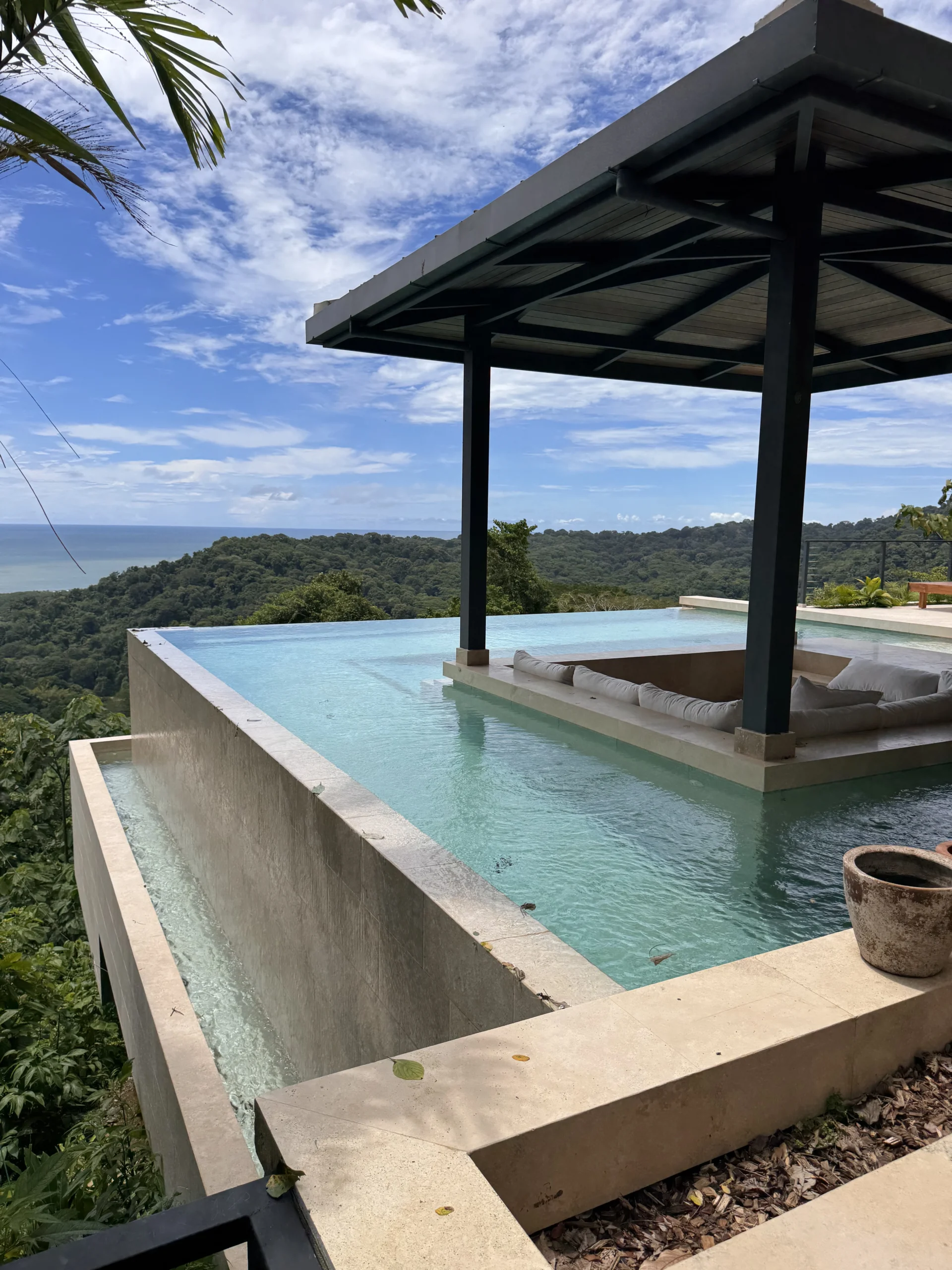 ✅ Lo que comenzó como un desafío técnico de gran escala hoy se convierte en una pieza arquitectónica que combina transparencia absoluta, elegancia y una vista que parece suspendida en el aire. Cada ángulo revela la pureza del vidrio extraclaro multilaminado y temperado, integrado con tal precisión que se siente como si el agua flotara en el paisaje de Uvita.